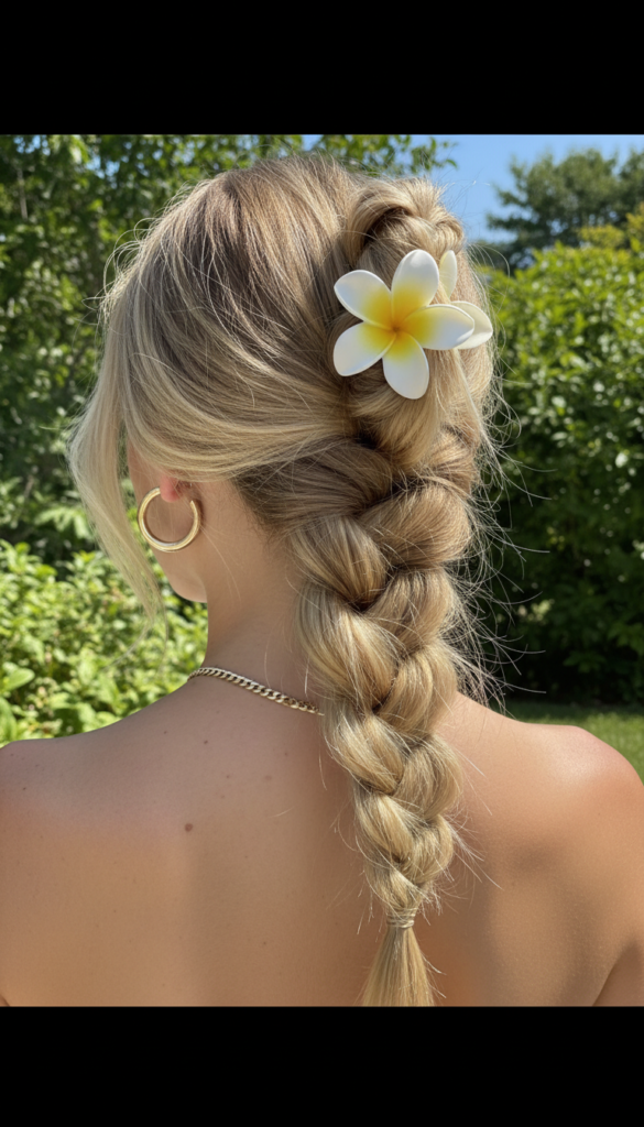 It holds well in humid conditions and requires minimal touch-ups throughout the day. The twisted braid feels soft and romantic while still being practical, and gently loosening sections can add volume and dimension for a more relaxed finish. It’s a perfect choice for both casual outings and semi-formal summer gatherings.