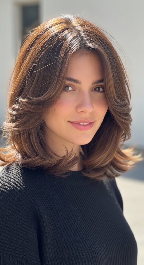 The layers can be subtle and blended for a soft, airy effect or more defined for a choppier, lived-in look. This style is especially flattering because it reduces heaviness in thick hair while adding body and lift to fine hair.