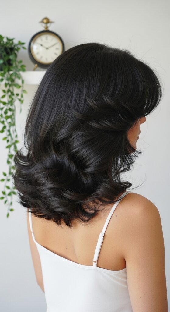 This style works beautifully with medium-length cuts because the length is ideal for creating volume without weighing the waves down. Subtle layers often enhance the texture, allowing the waves to form more naturally and preventing the hair from looking flat. The overall effect is soft, modern, and versatile – perfect for everyday wear, casual outings, or even dressed-up occasions. It flatters most face shapes and suits straight, wavy, or lightly curly hair types by adding depth and visual interest.