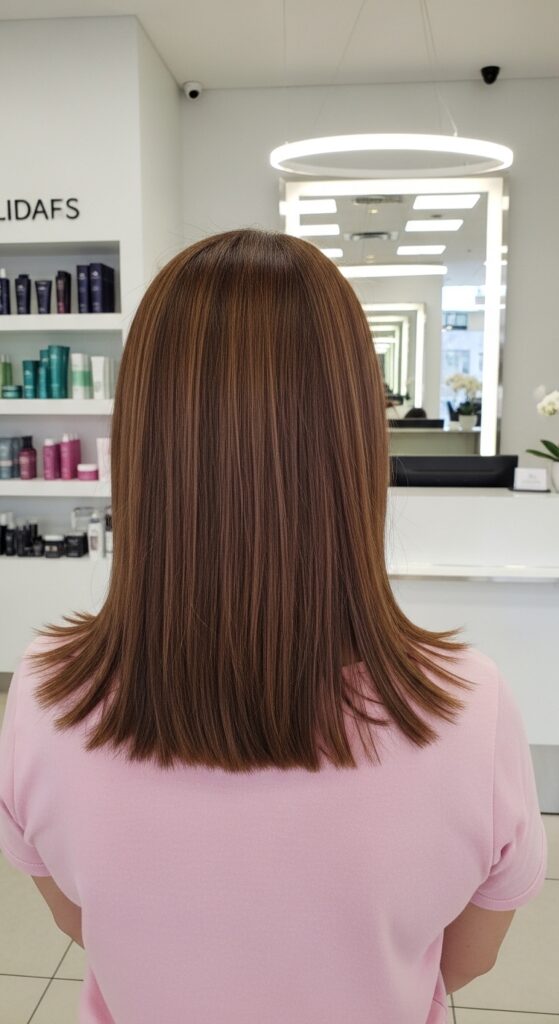 This style maintains overall length while adding gentle dimension, preventing the hair from appearing flat or heavy. The layers typically begin below the chin and gradually blend toward the ends, allowing the hair to fall effortlessly with a silky, glossy finish. Smooth layers are especially flattering for women who prefer a neat, elegant appearance while still enjoying volume and shape. The result is sophisticated, versatile, and perfect for both professional and casual settings.