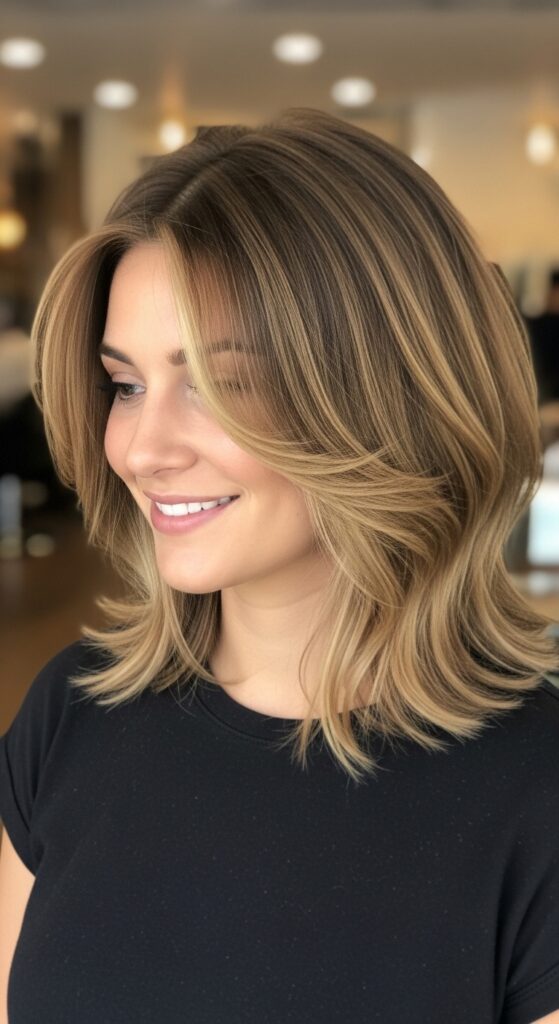 It frames the face beautifully, enhances natural waves, and creates effortless volume without sacrificing length. The layered lob strikes a perfect balance between polished and relaxed, making it ideal for women who want a hairstyle that feels lightweight, dynamic, and easy to style.
