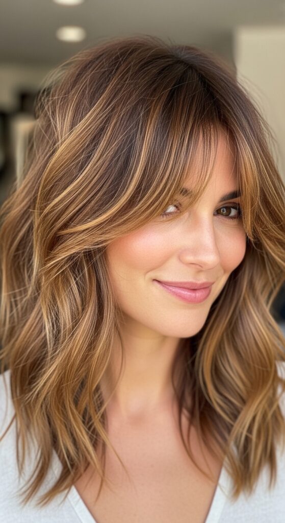 This style adds movement and dimension while gently highlighting the eyes and cheekbones. It works beautifully with medium-length cuts, layered styles, bobs, and even longer hair.