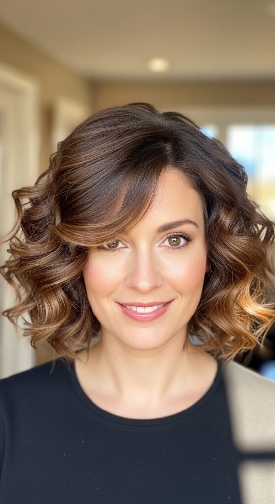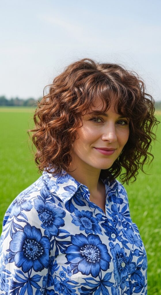 The Curly Bob is a lively, voluminous haircut that typically falls between chin and shoulder length, designed specifically to enhance and celebrate natural curls. Unlike straight bobs that rely on sharp lines, the curly bob focuses on shape, balance, and bounce. Layers are carefully added to prevent the hair from forming a triangular shape and to allow curls to spring freely with definition.