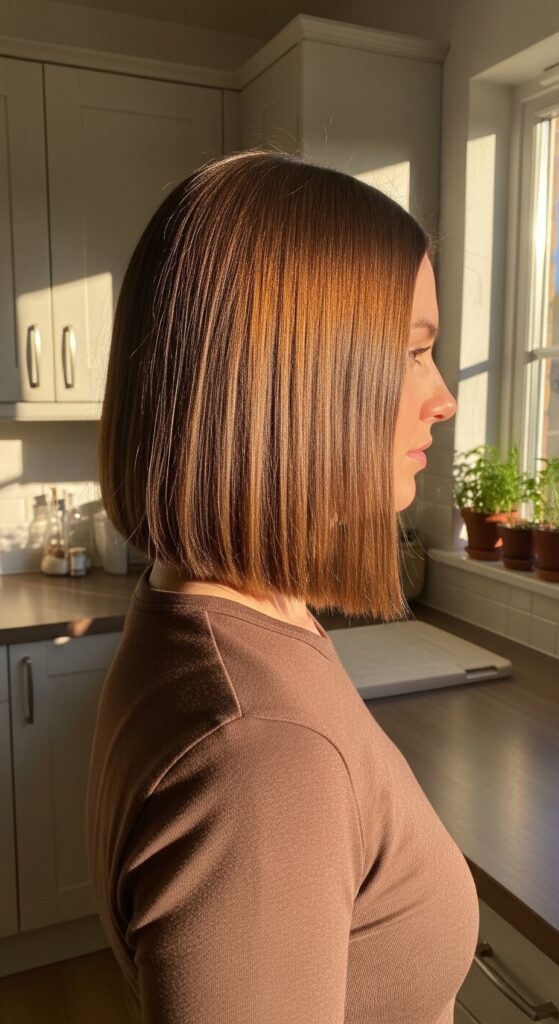 For an ultra-polished look, run a flat iron through small sections, keeping the ends straight rather than curling them under too much. Finish with a light anti-frizz serum or shine spray to enhance the glass-like smoothness. Regular trims every 6–8 weeks are essential to maintain the blunt shape and keep the ends looking sharp and healthy.