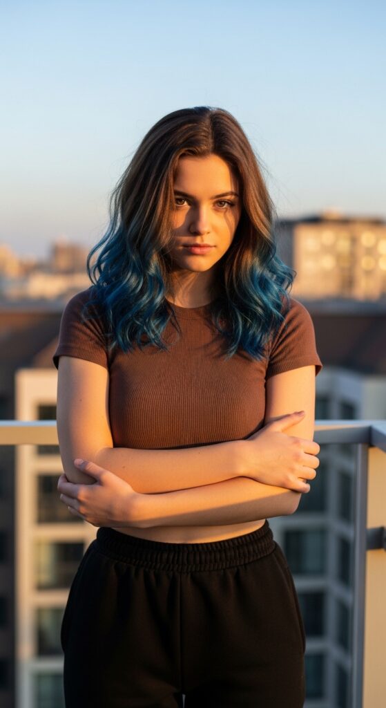 One of the biggest advantages of blue highlights on brown hair is the contrast they create. Darker brown shades pair beautifully with deep blues like navy or midnight blue, while medium to light brown hair can handle brighter tones such as cobalt, teal, or aqua. The result is a multidimensional effect that catches the light and adds depth, movement, and personality to the hair.