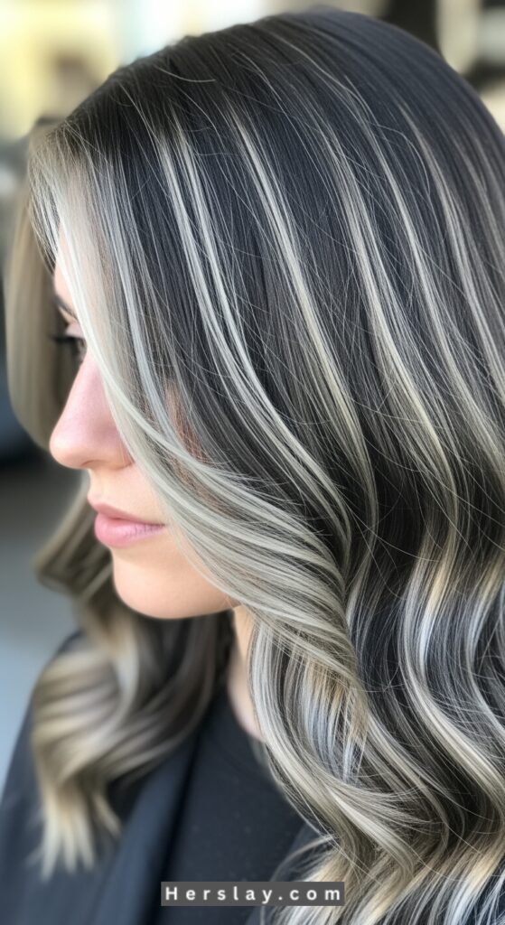 Ash Blonde Highlights on Dark Hair, Icy Ash Blonde Highlights for Dark Hair, and Ash Brown Highlights on Dark Hair all offer beautifully cool-toned ways to elevate a dark base with dimension and sophistication. Whether you prefer the soft contrast of ash brown, the balanced brightness of ash blonde, or the striking cool finish of icy ash blonde, each option enhances depth while maintaining a polished, modern look. These highlight styles are designed to blend seamlessly into dark hair, creating movement, texture, and a refined color transition that never feels harsh.